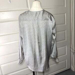 Adrianna Papell Flowy Luxurious Satiny Polka-dot Blouse V Neck Long Sleeves Sz M