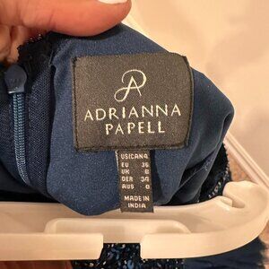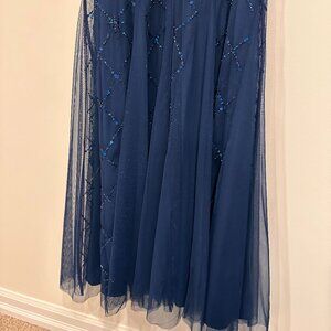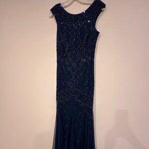 Adrianna Papell Navy Blue Beaded Mesh Gown – Size 4