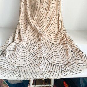 Adrianna Papell Nude Beaded Art Deco Spaghetti Strap Maxi Dress 0