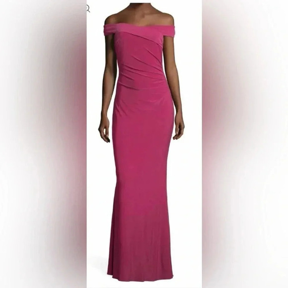 Adrianna Papell Off the Shoulder Mermaid Maxi Dress Bright Syrah Size 12