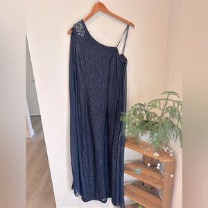 Adrianna Papell One Shoulder Draped Royal Navy Gown ~ size US 8