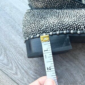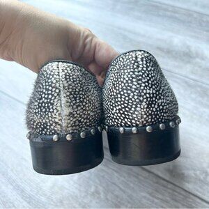 Polka dots leathers and calf hair, studded bottom for edge, 1 inch stacked heel