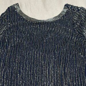 Dazzling and elegant, this Adrianna Papell dress in size US 4 / EU 36 is perfect for special occasions. Featuring a beautiful sequin pattern and a tie-back detail, this dress will make you shine at any event. Please note: some beading on the sides is slightly coming off, but replacement beads are attached for easy repair. New with tags, ready to add glamour to your wardrobe!