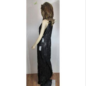 Adrianna Papell Sequin Embellished Black Halter Neck Maxi Gown Womens Size US 12