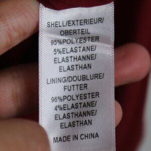 Deep ruby red in color with a smooth faux snake type texture. Fully lined, made of 95% polyester and 5% elastane. Has a smooth fit with back zipper. Cap sleeves. Seam detailing. In excellent, pre-loved condition with minimal signs of wear. Approx measurements: 3.5" shoulder-to-hem (sleeve), 18.5" pit-to-pit, 39.5" length (shoulder to hem)