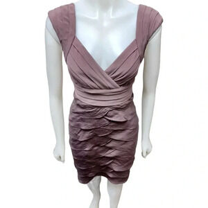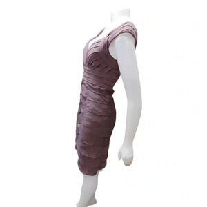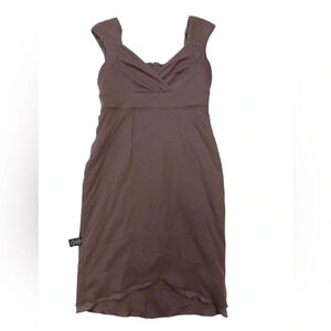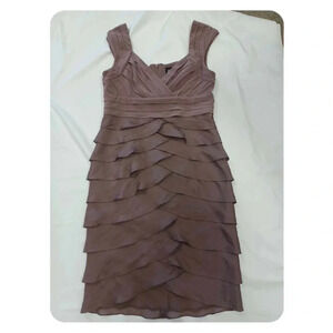 Adrianna Papell Shutter Pleat Ruffle Midi Taupe Sleeveless Dress Size 10
