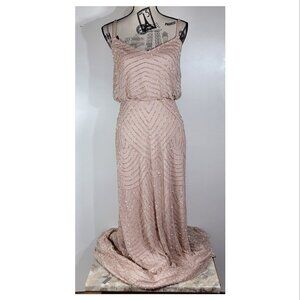 Adrianna Papell Sleeveless Beaded Formal Gown, Blush Pink, Womens Size 4