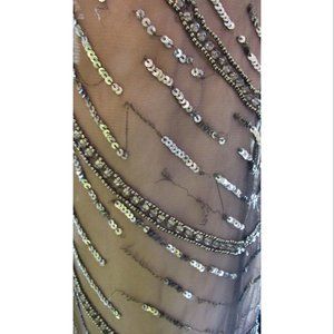 This Adrianna Papell dress is in very good condition, except for a few missing rows of sequins.