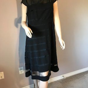 This Black Chiffon, Banded Cap Sleeve, Evening Dress has not been worn