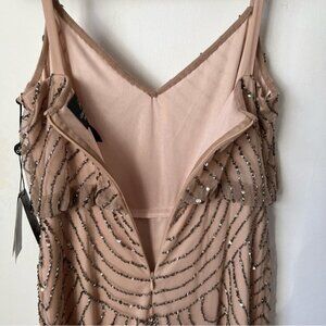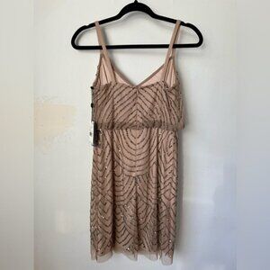 Adrianna Papell Women's Blouson Beaded Cocktail Dress - Taupe/Pink. Size: 0 (US)