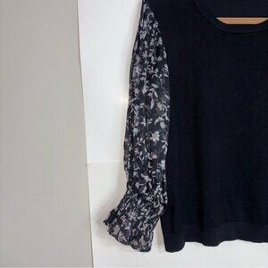 Adrianna Papell Women’s XL Black Knit Top Semi Sheer Balloon Sleeves Floral
