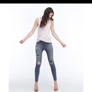 Adriano Goldschmied the Middi Ankle Distressed Mid Rise Skinny Blue Jeans
