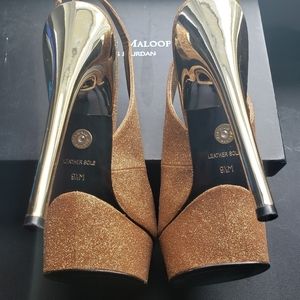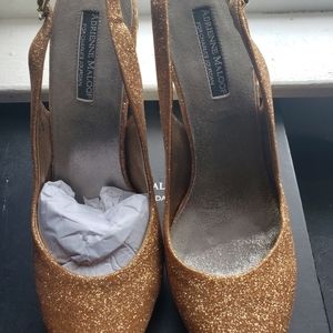 Adrienne Maloof for Charles Jourdan Gold Platform heels. Beautiful metallic glitter round toe sling back 6" spike heel by former Real Housewives of Beverly Hills Adrienne Maloof, A.K.A "The Maloof Hoof" 😉 Sz 9.5