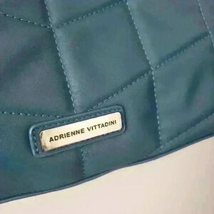 Adrienne Vittadani hobo Quentin quilt collection teal purse. very soft. pockets on front and back. One zippered pocket and two tuck pockets inside. comes with an adjustable, removable shoulder strap. 11 inches in height, 13 inches long.