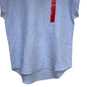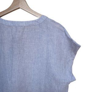 Adrienne Vittadini 100% Linen Blue White Striped Chambray Cap Sleeve Top Size M
