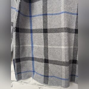 Adrienne Vittadini Knit top, mock neck plaid grey and blue xs