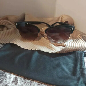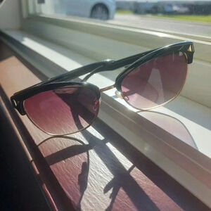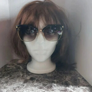 Adrienne Vittadini | Large Clubmaster Browline Black and Gold Sunglasses
