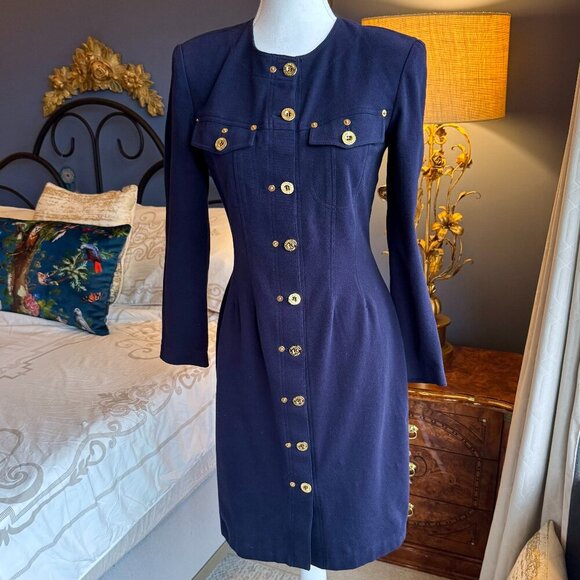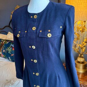 Adrienne Vittadini NWT Navy w Gold Buttons Long Sleeved Dress