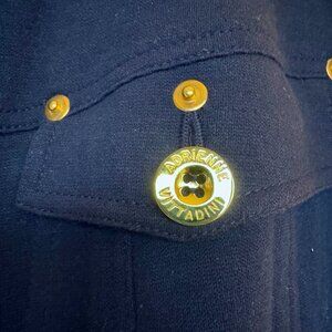 New with tags Adrienne Vittadini navy with gold buttons long sleeved dress, size M. Made in Hong Kong, 57% cotton, 43% spandex, super comfy, soft, and stretchy! Nice thick fabric. Taking the stretchiness into account... bust measures 16.5 inches laying flat, waist measures 14.5 inches flat, hips 18 inches flat, and length from shoulder to hem is 37.5 inches. Cat friendly, nonsmoking home.