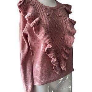Adrienne Vittadini Pink Crew Neck Sweater with Ruffle Detail
