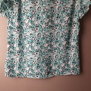 Adrienne Vittadini Short Sleeve Floral Blouse | White Turquoise Black | New! S/M