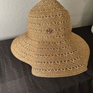 Adrienne Vittadini Wide Brim Floppy Beach Pool Travel Vacation Hat Packable Tan