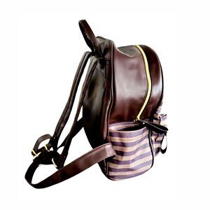 Adrienne Vittadini Women's Backpack Brown and Tan Stripped Faux Leather