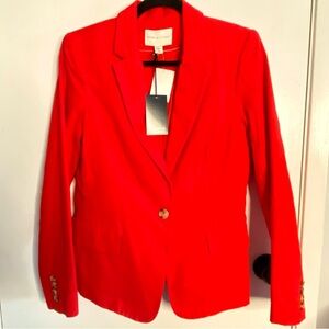Elevate your style with this vibrant orange/red Adrienne Vittadini Linen blazer.