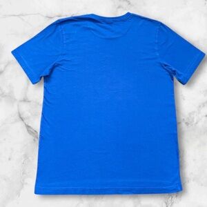 This eye-catching short sleeve tee features a vibrant blue color with a bold, humorous graphic on the front. The crew neck design ensures a classic fit. The contrasting text adds a playful touch to this standout piece. Bottom left has 3 tiny holes approximately less than 1mm hardly noticeable as shown in the last photo. Price has been adjusted to condition of the item.