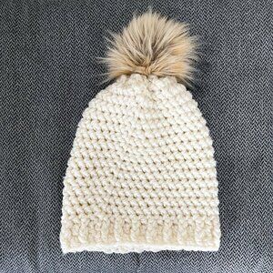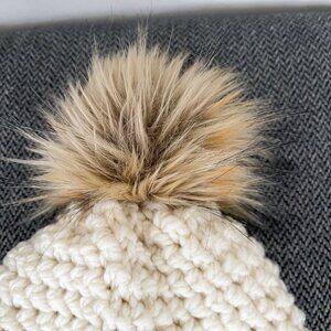 Ivory, Adult, super cute and cozy handmade crochet hat super soft and plush faux fur pompom.