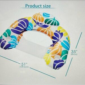 Adult lounge float. Great for pool or the beach. Featuring a mix of blue, red, green and yellow. New and unopened. Pictures for illustration only. The colours and pattern are in the first picture.