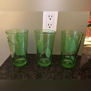 Set of three green glasses featuring Adventure Time characters. Perfect for fans of the show.