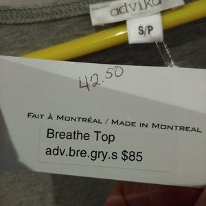Advika conscious eco fashion, grey Breathe Top, size small. medium large Made in Montreal, 92% bamboo viscose 8 % spandex. has a unique shape at the bottom