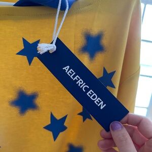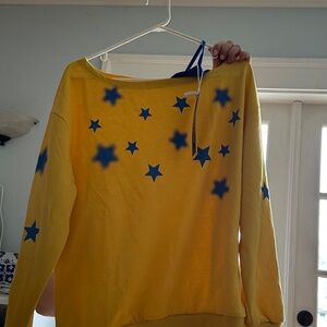 Add a playful twist to your look with this star-graphic sweatshirt-cute and full of life. The off-shoulder design highlights your collarbones and shoulders, effortlessly enhancing your charm. Perfect for dates, vacations, or parties.