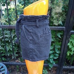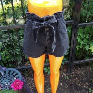 In excellent condition. Button fly high-rise paperbag waist mom jean shorts in black denim.