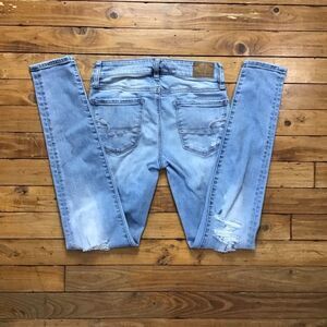 Item keywords: American Eagle, skinny jeans, distressed jeans, ripped jeans, light wash denim, blue jeans, casual denim, mid rise jeans, stretch jeans, women’s jeans, AE jeans, trendy denim, everyday jeans, casual style, streetwear jeans, classic skinny fit