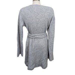 Aerie Alpaca Wool Blend Womens Medium Sweater Wrap Dress Gray Ribbed Bell Sleeve
