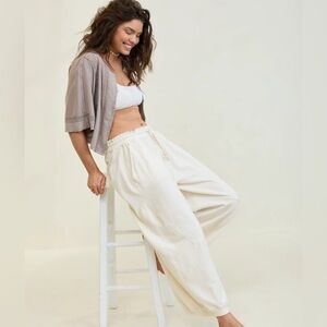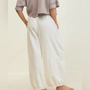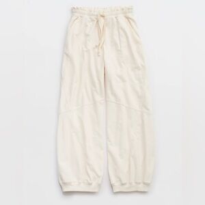 Aerie Baggy Barrel Leg Fleece Pant Cropped Cotton light Beige Off white size XS