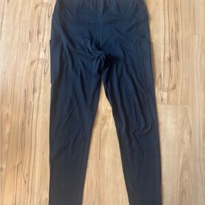 Comfortable black leggings with a high-waisted fit. Ideal for active or casual wear.