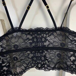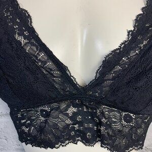 Aerie Black Sheer Lace Padded Strappy Crisscross Back Lingerie Bralette