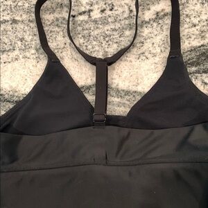 Experience comfort and support with the Aerie Black Sports Bra, featuring a sleek V-neck design and thin adjustable shoulder straps. The wide band under the bust provides a secure fit, making it perfect for both athletic activities and lounging. Its minimalist style and smooth matte fabric make it a versatile essential in your intimates collection. Like new condition. Check out my other listings and bundle to save.