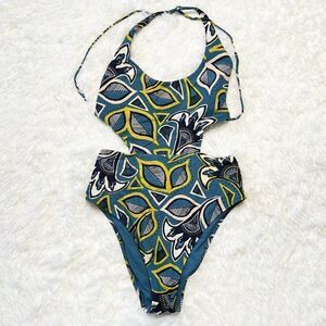 Aerie Blue Halter Cut Out One Piece Swimsuit 9959
