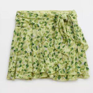 Aerie Chiffon Wrap Green Abstract Print Mini Skirt Sz S