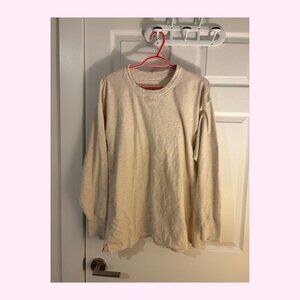 Aerie Cozy Long Sleeve Oversized Boyfriend T-Shirt, Cream, Size L