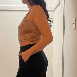 🌿 Effortlessly Chic & Comfortable! This Aerie tan crochet crop top is perfect for layering or wearing on its own. Featuring a simple yet stylish design, it’s a must-have for casual days or summer outings.