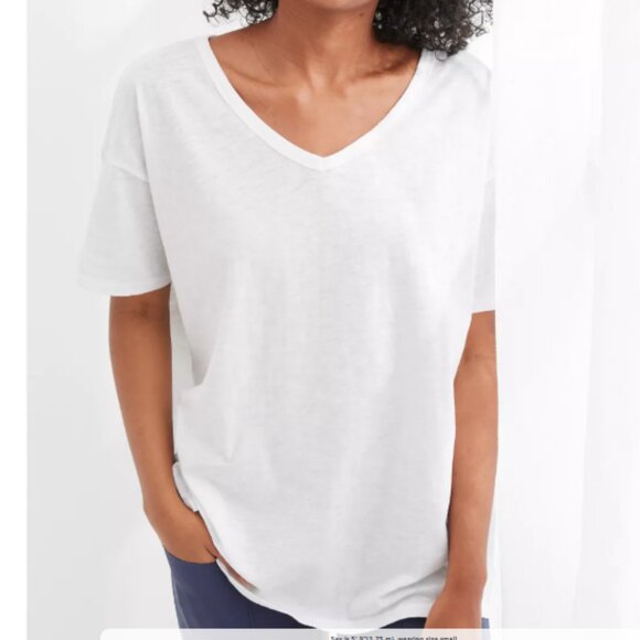 Aerie Distressed Basic V-Neck Boyfriend T-Shirt - XL in White - Free w/Purchase