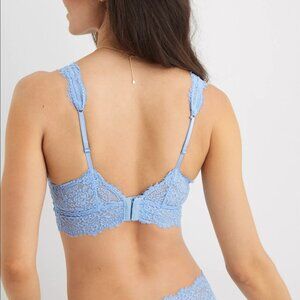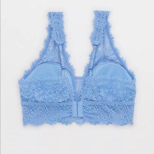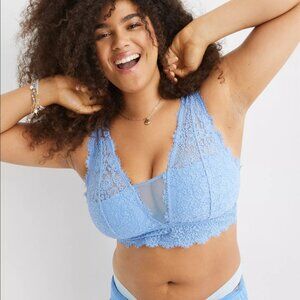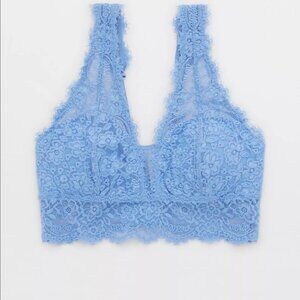 Brand new with tags Aerie light blue lace longline bralette. Features scalloped lace edges, soft cups, a flattering deep V neckline with mesh inset, and a comfortable longline lace band for light support and style.