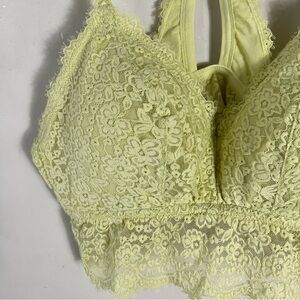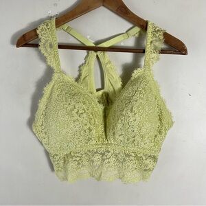Aerie Eyelash Lace Plunge Bralette yellow Padded Size XL