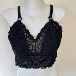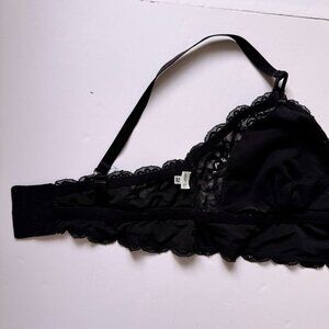 Aerie Eyelash Softest Lace Lined Bralette Bra Black Stappy Comfy Sz XL