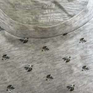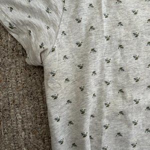 Aerie grey babydoll tee with blue and green dainty floral pattern.